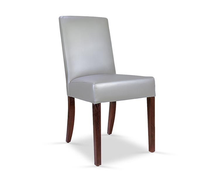 Wooden side chair with seat and back entirely upholstered.  Chairs, Wood chairs