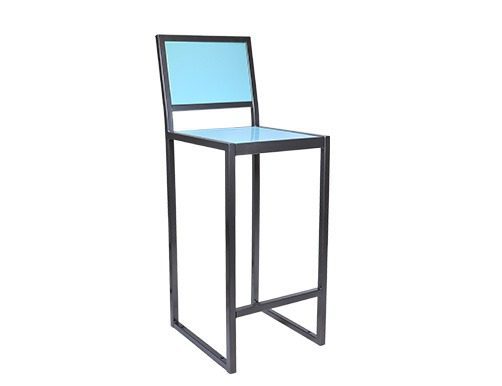 Metal barstool with a metal seat and back, for interiors or exteriors.