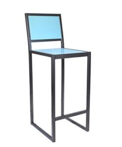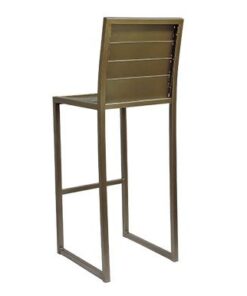 Metal barstool with a metal seat and back, for interiors or exteriors.